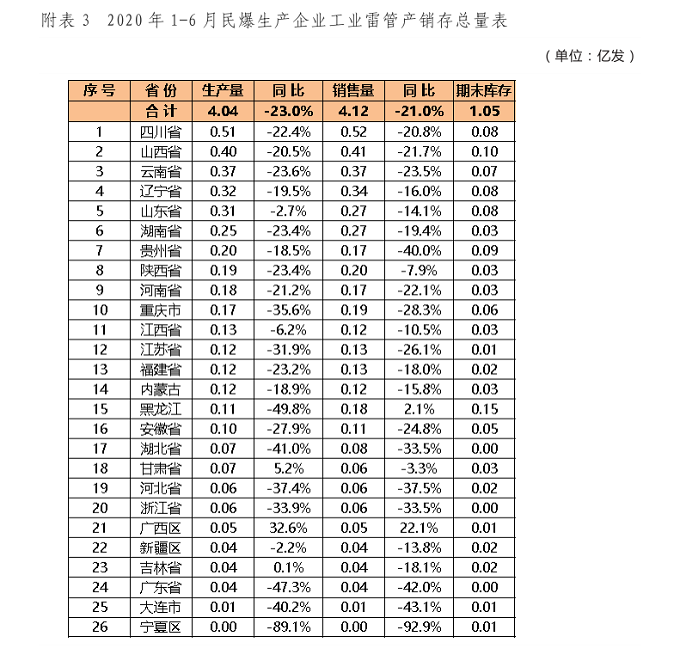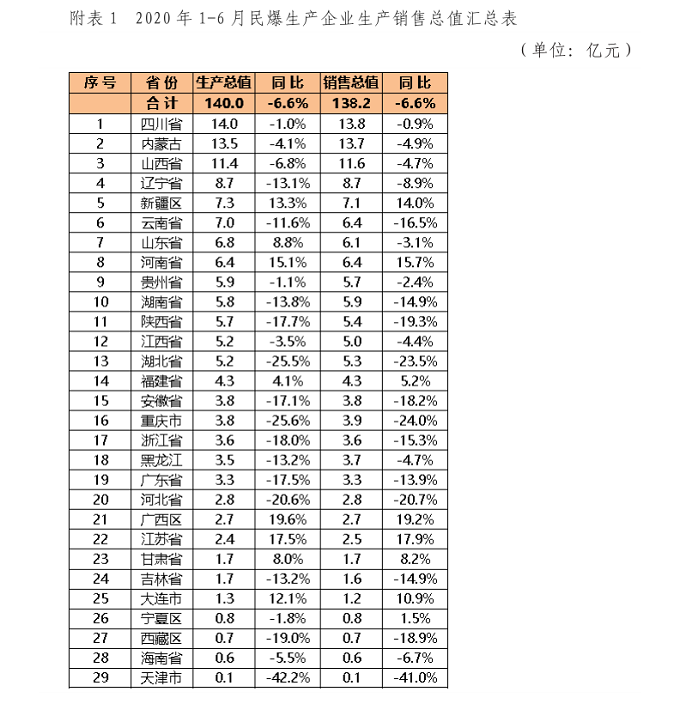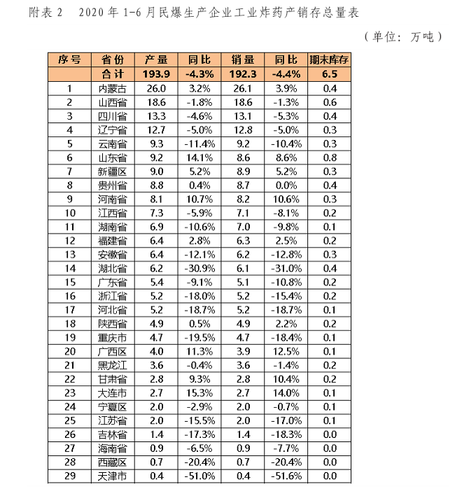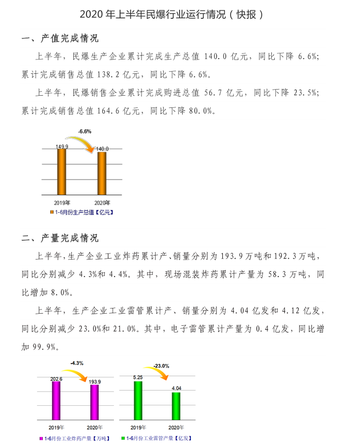 2020年上半年民爆行業(yè)運(yùn)行情況