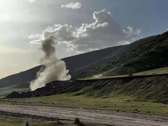 警戒、布孔、裝藥、聯(lián)網(wǎng)……,“起爆”,隨著項目現(xiàn)場總指揮一聲令下,吉爾吉斯斯坦2023年4月27日下午6時(北京時間晚上8時),伴隨著陣陣轟響,紅旗民爆集團薩硫特公司吉哈邊境道路爆破項目實施首爆,各項爆破指標均達到設計要求,爆破效果良好,成功打響了集團公司海外自主爆破作業(yè)第一炮。